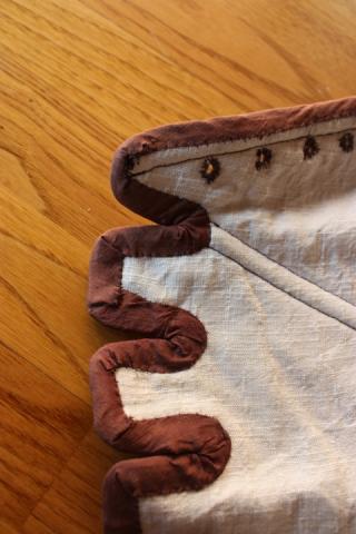 Détail - œillets brodés main et biais sur les tassettes