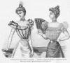 Toilette de bal avec corsage en dentelle. - Cette toilette se compose d’une jupe en soie ivoire et d‘un corsage-blouse recouvert en lèze de dentelle ivoire. La jupe avec ceinture plissée en soie, est ornée devant et sur les côtés d’une belle dentelle simulant une basque,